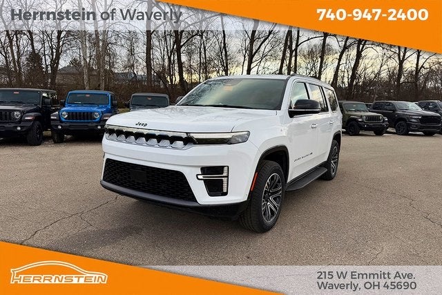 Herrnstein of Waverly is proud to offer this good-looking 2026 Jeep Grand Wagoneer in Bright White Clearcoat. This 2026 Jeep Grand Wagoneer has passed our comprehensive inspection and comes with the following features; Quick Order Package 29E Grand Wagoneer, 118 Mph Maximum Speed Calibration, 3.55 Rear Axle Ratio, 3rd row seats: bench, 4-Wheel Disc Brakes, 9 Speakers, ABS brakes, Air Conditioning, Alloy wheels, AM/FM radio: SiriusXM with 360L, Anti-whiplash front head restraints, Apple CarPlay/Android Auto, Audio memory, Auto Adjust in Reverse Exterior Mirrors, Auto High-beam Headlights, Auto-dimming door mirrors, Auto-Dimming Exterior Driver Mirror, Auto-dimming Rear-View mirror, Auto-leveling suspension, Automatic temperature control, Brake assist, Bumpers: body-color, Compass, Delay-off headlights, Driver door bin, Driver vanity mirror, Driver's Seat Mounted Armrest, Dual front impact airbags, Dual front side impact airbags, Electronic Stability Control, Emergency communication system: Jeep Connect, Exterior Mirrors Approach Lamps, Exterior Mirrors with Memory, Exterior Mirrors with Supplemental Signals, Exterior Parking Camera Rear, Four wheel independent suspension, Front anti-roll bar, Front Bucket Seats, Front Center Armrest w/Storage, Front dual zone A/C, Front fog lights, Front reading lights, Fully automatic headlights, Garage door transmitter, Heated door mirrors, Heated Exterior Mirrors, Heated front seats, Heated steering wheel, Illuminated entry, Knee airbag, Leather Trimmed Bucket Seats, Low tire pressure warning, Manufacturer Statement of Origin, Memory seat, Navigation System, Normal Duty Suspension, Occupant sensing airbag, Outside temperature display, Overhead airbag, Overhead console, Panic alarm, Passenger door bin, Passenger seat mounted armrest, Passenger vanity mirror, Power door mirrors, Power driver seat, Power Liftgate, Power passenger seat, Power steering, Power windows, Radio data system, Radio: Uconnect 5 Nav with 12.0 Display, Rain sensing wipers, Rear air conditioning, Rear anti-roll bar, Rear reading lights, Rear seat center armrest, Rear window defroster, Rear window wiper, Reclining 3rd row seat, Remote keyless entry, Security system, Speed control, Speed-sensing steering, Speed-Sensitive Wipers, Split folding rear seat, Steering wheel memory, Steering wheel mounted audio controls, Tachometer, Telescoping steering wheel, Tilt steering wheel, Traction control, Trip computer, Turn signal indicator mirrors, Variably intermittent wipers, Ventilated front seats, Voltmeter, and Wheels: 20 x 9 Machine Face Painted Aluminum.