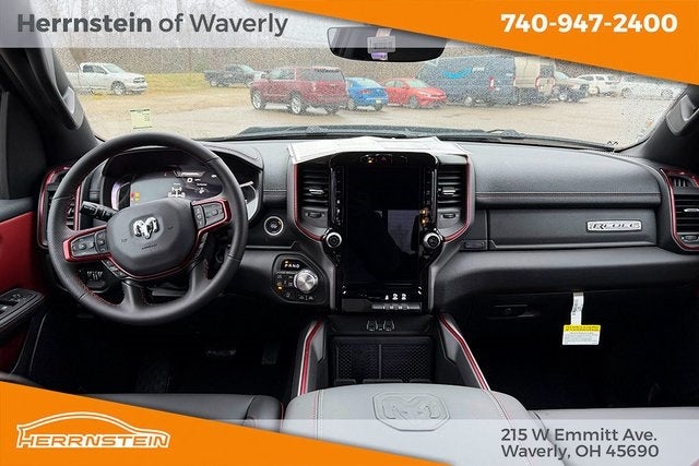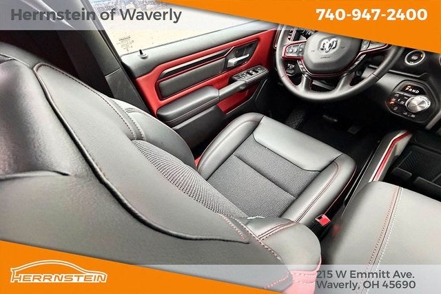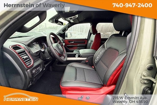 Herrnstein of Waverly is proud to offer this terrific-looking 2026 Ram 1500 in Canyon Lake. This 2026 Ram 1500 has passed our comprehensive inspection and comes with the following features; Bed Utility Group (Exterior 115V AC Outlet, MOPAR 4 Adjustable Cargo Tie-Down Hooks, and MOPAR Spray in Bedliner), Quick Order Package 21W Rebel, Rebel Level 1 Equipment Group (Auto Power-Folding Mirrors, Auto-Dimming Exterior Driver Mirror, Black Exterior Mirrors, Black Premium Power Mirrors, Convex Wide-Angle Exterior Mirror Insert, Exterior Mirrors Courtesy Lamps, Exterior Mirrors with Heating Element, Exterior Mirrors with Supplemental Signals, Power Adjustable Pedals, Rear Window Defroster, Remote Tailgate Release, and Wireless Charging Pad), 10 Speakers, 3.92 Rear Axle Ratio, 4 Way Front Headrests, 4-Wheel Disc Brakes, 4G LTE Wi-Fi Hot Spot, ABS brakes, Active Noise Control System, Air Conditioning, Alloy wheels, AM/FM radio: SiriusXM with 360L, Apple CarPlay, Apple CarPlay/Android Auto, Auto High-beam Headlights, Auto-dimming Rear-View mirror, Automatic temperature control, Brake assist, Bucket Seats, Cloth/Vinyl Bucket Seats, Compass, Connected Travel and Traffic Services, Connectivity - US/Canada, Delay-off headlights, Disassociated Touchscreen Display, Driver door bin, Driver vanity mirror, Dual front impact airbags, Dual front side impact airbags, Electronic Stability Control, Front anti-roll bar, Front Bucket Seats, Front Center Armrest w/Storage, Front dual zone A/C, Front fog lights, Front License Plate Bracket, Front reading lights, Front Seat Back Map Pockets, Front wheel independent suspension, Full Length Upgraded Floor Console, Fully automatic headlights, Garage door transmitter, Global Telematics Box Module, Google Android Auto, GPS Antenna Input, GPS Navigation, HD Radio, Heated door mirrors, Heated Front Seats, Heated front seats, Heated Steering Wheel, Heated steering wheel, Illuminated entry, Integrated Center Stack Radio, Integrated Voice Command with Bluetooth®, Leather steering wheel, Low tire pressure warning, Manual Folding Exterior Mirrors, Manufacturer's Statement of Origin, Navigation System, Occupant sensing airbag, Off-Road Information Pages, Outside temperature display, Overhead airbag, Overhead console, Panic alarm, ParkView Rear Back-Up Camera, Passenger door bin, Passenger vanity mirror, Power 2-Way Driver Lumbar Adjust, Power Adjust 8-Way Driver Seat, Power door mirrors, Power driver seat, Power steering, Power windows, Radio data system, Radio: Uconnect 5 Navigation with 12.0 Display, Rear 60/40 Folding Seat, Rear anti-roll bar, Rear seat center armrest, Rear step bumper, Remote keyless entry, SiriusXM Radio Service, SiriusXM with 360L, Speed control, Split folding rear seat, Steering wheel mounted audio controls, Tachometer, Telescoping steering wheel, Tilt steering wheel, Traction control, Trip computer, USB Host Flip, Variably intermittent wipers, Voltmeter, and Wheels: 18 x 8.0 Painted Mid-Gloss Black.
