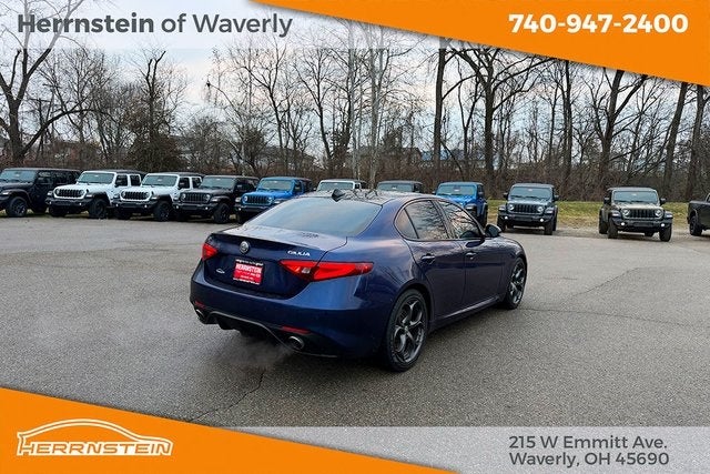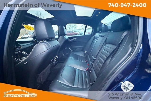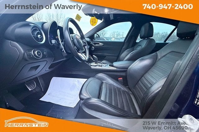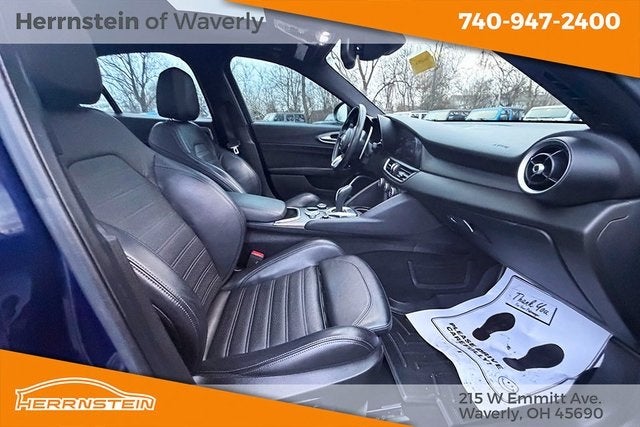 Giulia Ti Sport, 4D Sedan, I4, 8-Speed Automatic, AWD, Blue Metallic, Black Leather.